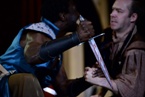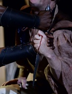 "The play explodes into action with a high-powered fight sequence using real swords, axes and spears that superbly captured the intensity of battle".